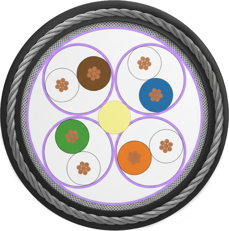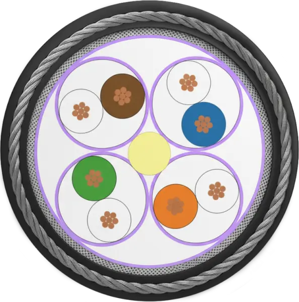 Sequence of colors: WH/BU-WH/OG-WH/GN-WH/BN Shield braiding of tinned copper wires (38 AWG) Coverage about 65%